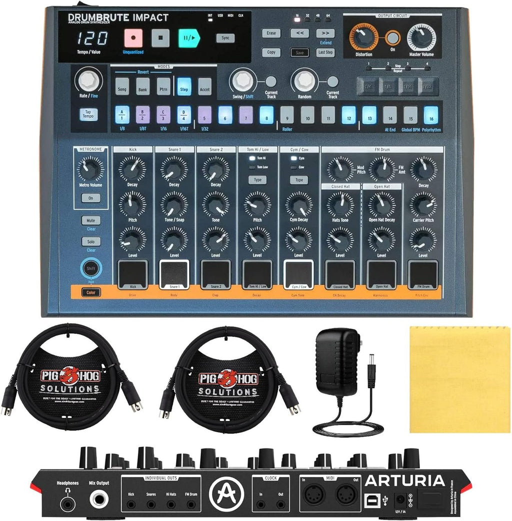 - Arturia DrumBrute Impact Analog Drum Machine BUNDLE with 2x Pig Hog MIDI Cable 6ft, Power Supply, and Polishing Cloth - Beat Making Equipment with 10 Drum Sounds, 64 Patterns with 64 Steps