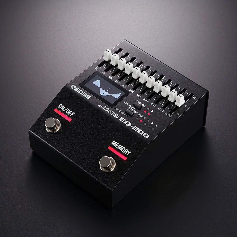 Looking for total control over your tone—on stage or in the studio? This bundle gives you everything you need: the BOSS EQ-200 Graphic Equalizer Pedal, two 6"" patch cables, 12 guitar picks, and a polishing cloth for easy setup and daily care. Designed to be the centerpiece of any serious rig, the EQ-200 solves the problem of inflexible tone shaping with dual 10-band EQ engines that operate independently or in tandem via stereo, series, or parallel routing. Unlike standard EQs, the EQ-200 offers deep frequency targeting with three selectable range modes—perfect for switching between guitar, bass, and keyboards. Each band delivers up to ±15 dB of cut or boost, with a global level control to fine-tune your output. Need more flexibility? Use the insert loop to position external pedals pre- or post-EQ, or connect via MIDI and expression pedal for real-time control. Its bright graphic display gives you an immediate visual reference of your tone curve, and the Panel Lock keeps your settings safe during live sets. With high-resolution 32-bit AD/DA and 96kHz processing, plus four onboard memory slots and firmware-ready USB support, the EQ-200 is a forward-thinking EQ platform built for evolving setups.INCLUDES ESSENTIAL ACCESSORIES – Comes with EQ-200 pedal, 2x 6" patch cables, 12x guitar picks, and a polishing cloth for setup and careFLEXIBLE STEREO EQ ROUTING – Dual 10-band EQs run in stereo, series, or parallel with stereo I/O ideal for amps, FX chains, and keyboardsPRECISE FREQUENCY CONTROL – Offers ±15 dB cut/boost per band, master level, and three range modes to tailor tone for any instrumentREAL-TIME TONE VISUALIZATION – Graphic display shows EQ curve with Panel Lock to prevent accidental changes during live usePERFORMANCE-READY FEATURES – Save custom patches, connect external pedals or MIDI, and enjoy pristine sound with 32-bit/96kHz processing