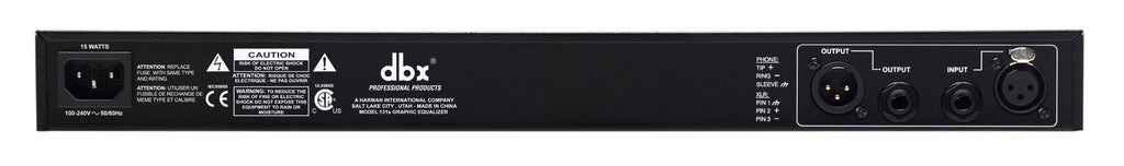 dbx 131s Single Channel 31-Band EqualizerDual 15-band, 1/3-octave constant Q frequency bandsSwitchable boost/cut ranges of 6 or 12 dBFront panel bypass switch12 dB input gain range4-Segment LED ladders for monitoring output levelsInputs: ¼” TRS and female XLR (pin 2 Hot)Outputs: ¼” TRS and male XLR (pin 2 Hot)