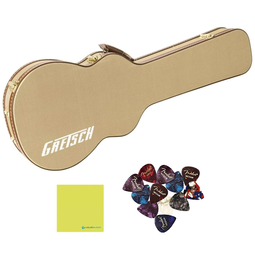 - Liquid Audio Gretsch® G2655T Streamliner Guitar Case, Brown Plush Interior, Tweed - 9222655001 Bundle w/ 12-Pack Guitar Pick Polishing Cloth
