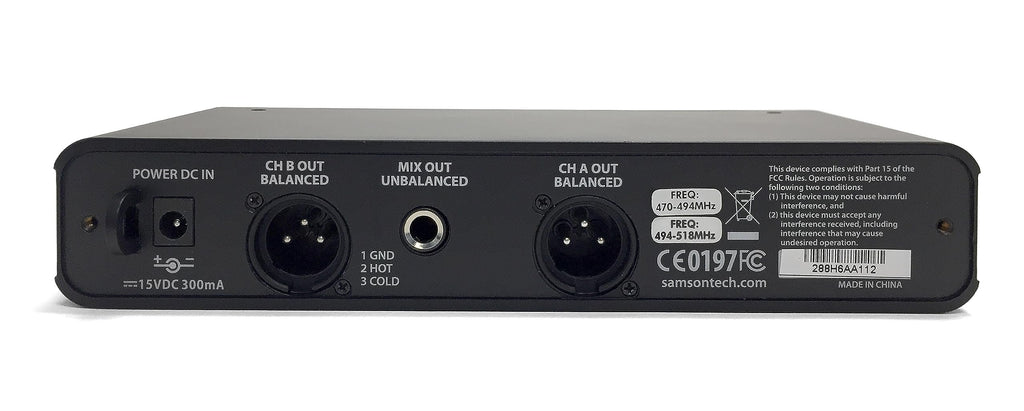 Samson Concert 288 All-In-One Dual-Channel Wireless System (I Band)High-performance UHF wireless solution whether a handheld, lavalier or headset s neededUp to 24 systems (48 performers) can be operated simultaneously across two frequency bands with separate Volume controls for each wireless signalDual balanced XLR outputs for routing signals to two separate mixer channels or 1/4" unbalanced mix output to combine signals to one output channelEach offers up to eight hours of battery life using two AA batteries with a 300' operating rangeIncludes a CH288 Handheld Transmitter with a Q6 Dynamic Microphone capsule, LM5 Lavalier Microphone, HS5 Headset Microphone, CB288 Beltpack Transmitter, CR288 Wireless Receiver, two antennas and power supply