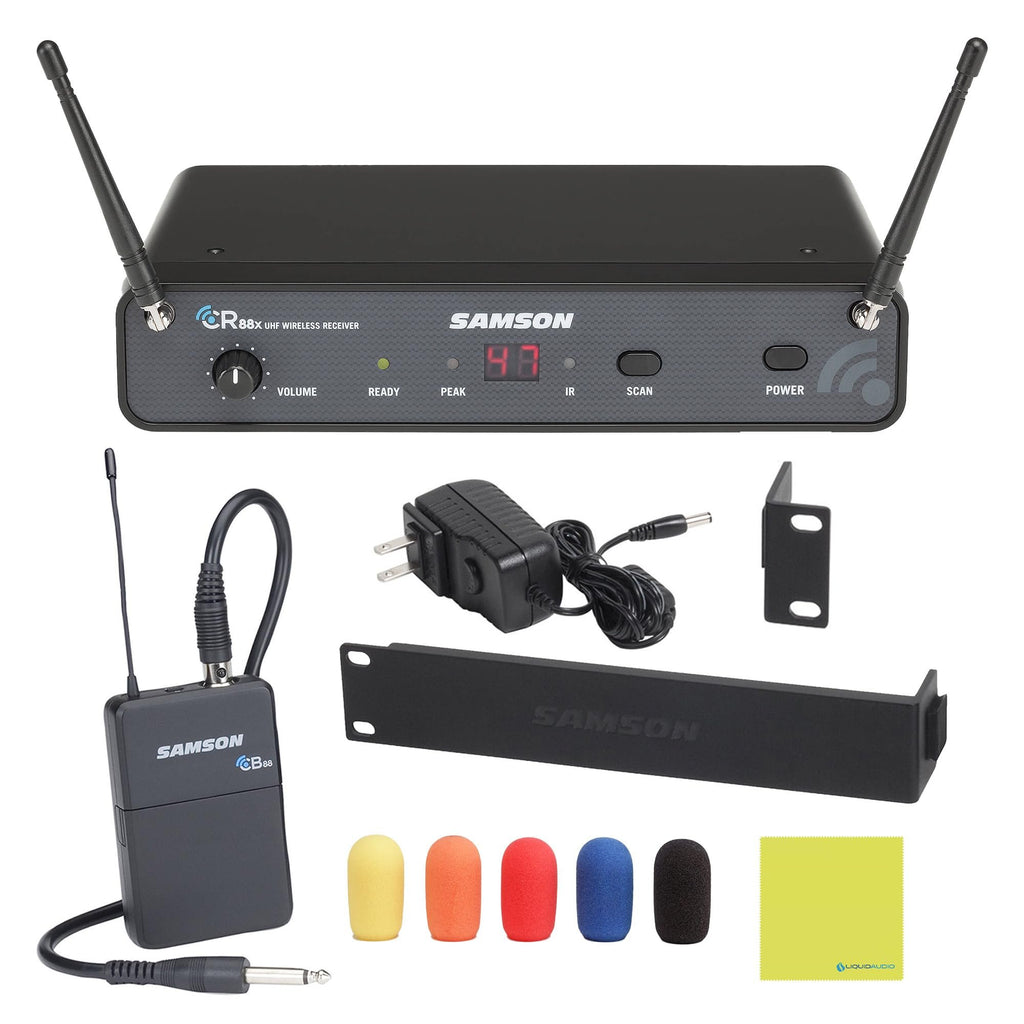 - Samson Concert 88x Guitar Wireless System Bundle with Samson WS5E Headset Windscreen 5-Pack & Polishing Cloth – SWC88XBGT-K, K Band: 470–494 MHz