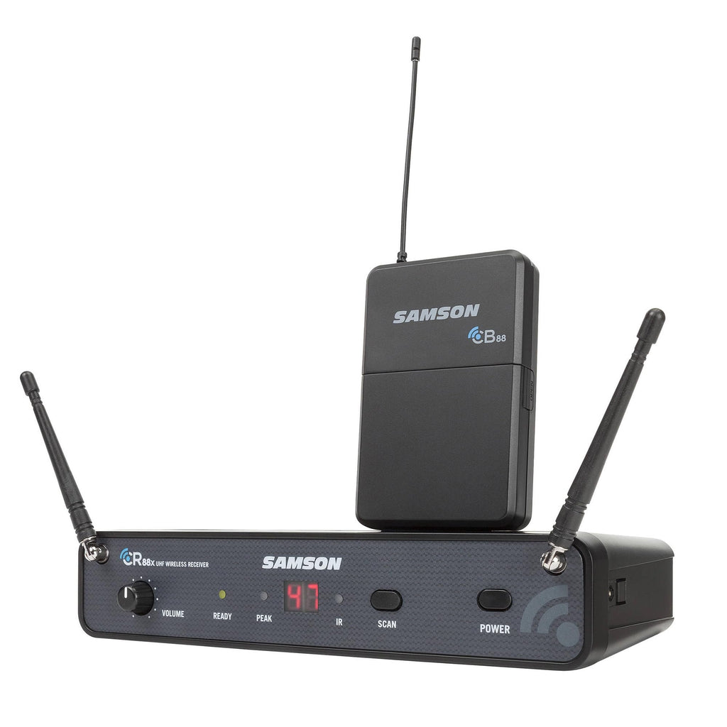 Take the stage with confidence using the Samson Concert 88x Guitar Wireless System (SWC88XBGT-K), a professional-grade wireless solution designed for guitarists and electric instrumentalists. This complete bundle includes the Concert 88x system, a 5-pack of Samson WS5E headset microphone windscreens, and a polishing cloth, giving you everything you need for reliable wireless performance. Featuring 100 selectable frequencies across a 25MHz bandwidth, the Concert 88x ensures clean, interference-free signal transmission, even in busy RF environments. The system supports up to 8 simultaneous systems per frequency band (region dependent), making it perfect for bands and multi-instrument setups. With a generous 300-foot operating range (line-of-sight), you’ll enjoy freedom of movement without compromising sound quality. The CR88x receiver offers true diversity reception with a one-touch automatic scan that finds the clearest operating frequency. Its balanced XLR and unbalanced 1/4" outputs ensure seamless integration with any mixer, PA, or AV system. The CB88 beltpack transmitter is compact and rugged, featuring adjustable gain control and up to 8 hours of operation on two AA batteries. Whether you're performing on stage or recording in the studio, the Concert 88x delivers professional wireless audio that’s dependable, easy to use, and stage-ready.BUNDLE WITH ACCESSORIES INCLUDED – Comes with Samson Concert 88x Guitar Wireless System (SWC88XBGT-K), WS5E Windscreen 5-Pack & Polishing Cloth for a complete wireless guitar setup.RELIABLE WIRELESS RANGE & CLARITY – Operates on 100 selectable frequencies across a 25MHz bandwidth, with up to 8 simultaneous systems per frequency band (region dependent).TRUE DIVERSITY RECEPTION – CR88x receiver uses true diversity technology and a one-touch scan to find the clearest frequency, ensuring drop-out-free performance up to 300 feet.COMPACT & DURABLE TRANSMITTER – CB88 beltpack transmitter includes adjustable gain control, a metal clip, and runs up to 8 hours on 2 AA batteries for extended performances.EASY INTEGRATION & ACCESSORIES – Receiver includes XLR and 1/4" outputs, a rackmount kit, and a 1/4" to mini-XLR cable to connect guitars, basses, or other electric instruments.