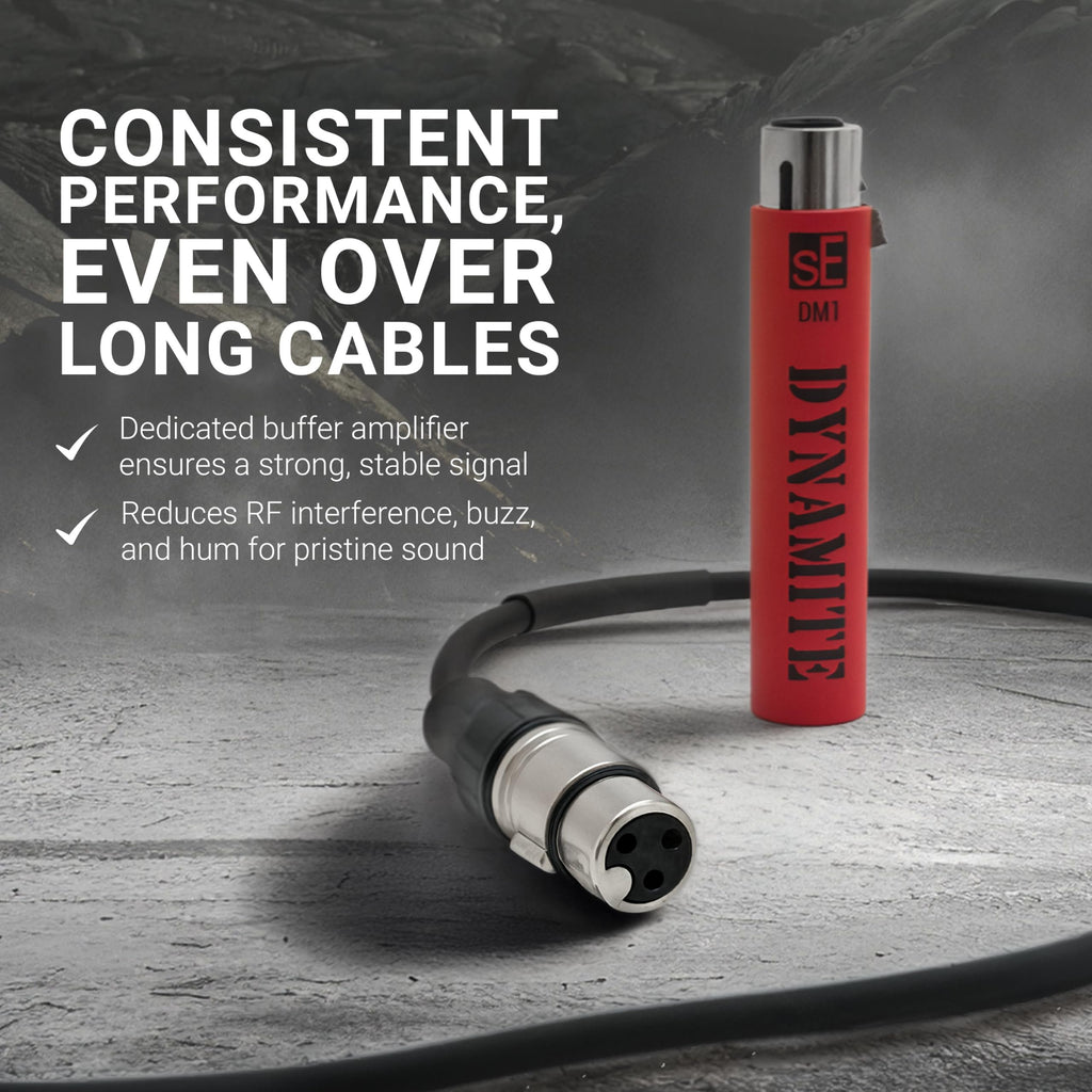 - sE Electronics DM1 Dynamite Ultra-Slim Inline Microphone Preamp for Ribbon & Dynamic Microphones - Mic Preamp with +28dB Gain for Clean, Natural Sound - Ideal for Podcasting & Live Sound (Black)