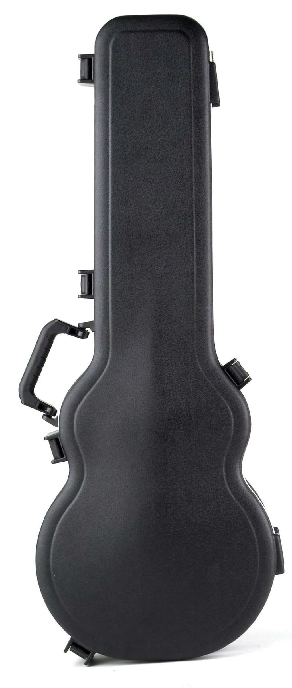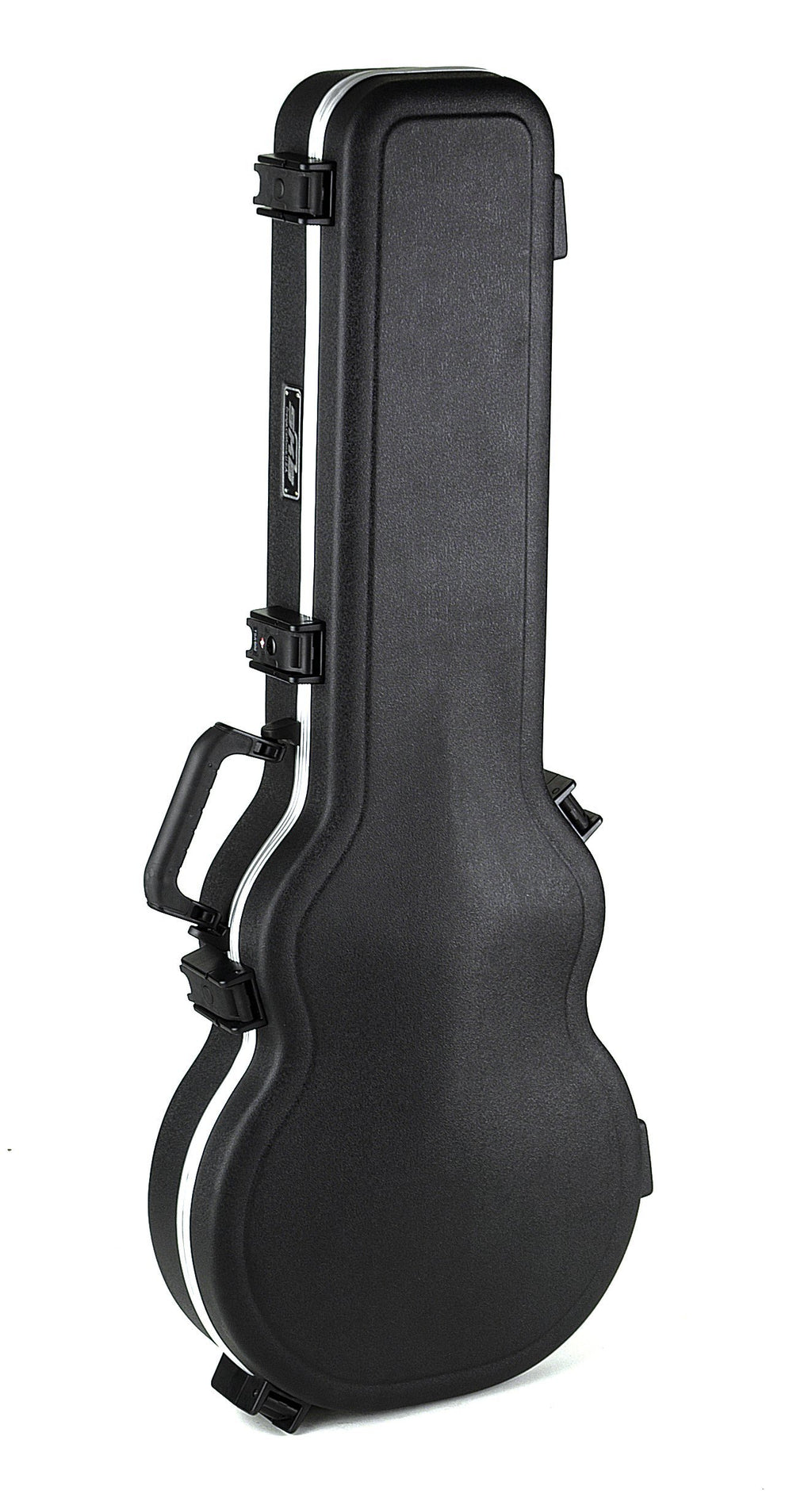 SKB 56 LP Electric Guitar CaseArch Top Design. Full length neck support. New fiberglass reinforced nylon trigger release latching system.Foam Fitted EPS Interior with Deluxe Plush Lining for Les Paul Type Guitars and ReplicasThe SKB 56 features a bumper protected valance, injection molded feet, an indestructible cushioned rubber over-molded handle and an accessories compartment.Latches are reinforced with back plates so that even Arnold couldn't pull them outInstrument Body Length: 18.00 in, Instrument Body Depth: 2.25 in, Instrument Lower Bout: 13.00 in, Instrument Upper Bout: 9.75 in