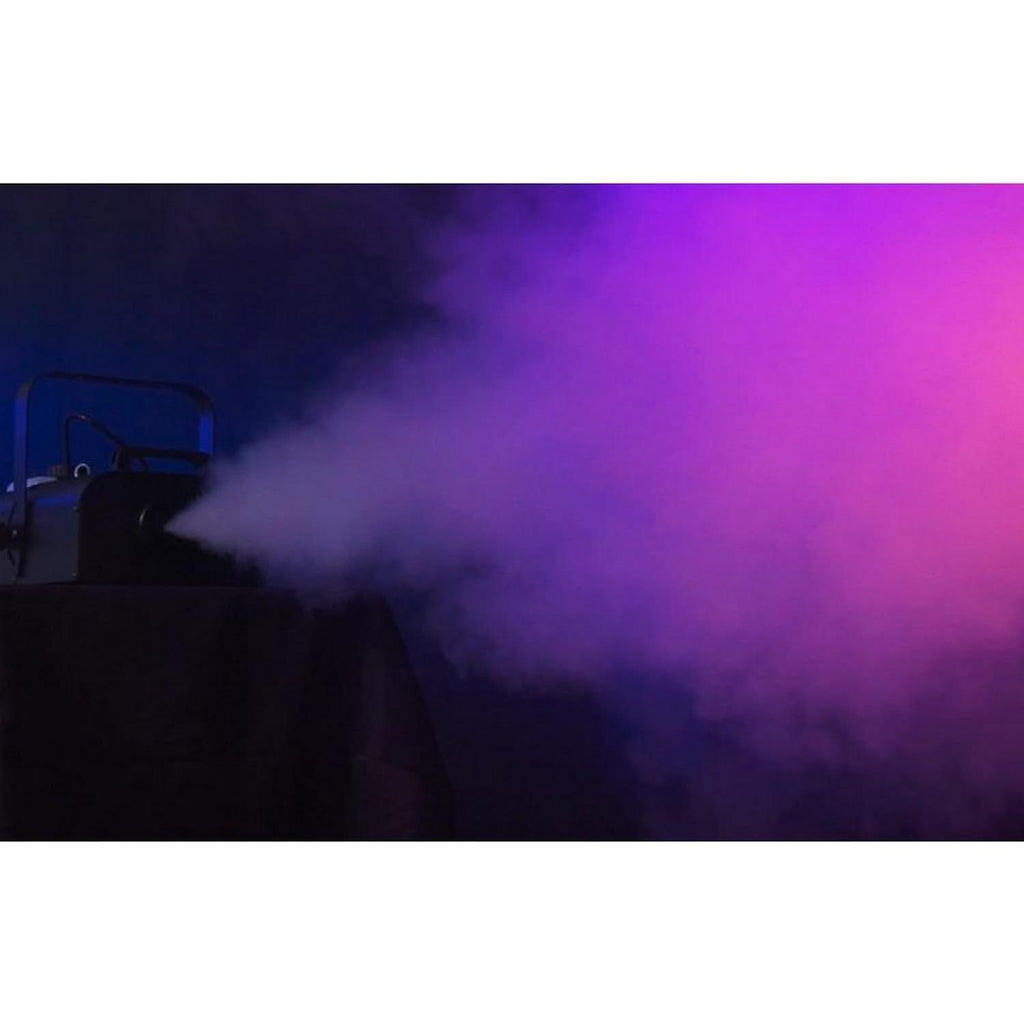 - 1650W mobile DMX Fog Machine High-efficiency heater block burns through fog with less residue LED heating indicator system in tank: Red = Heating; Green = Ready to use; Flashing = Fog fluid tank is low Low fog fluid shut off sensor to protect pump Warm-up time: 3 minutes