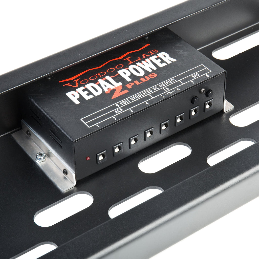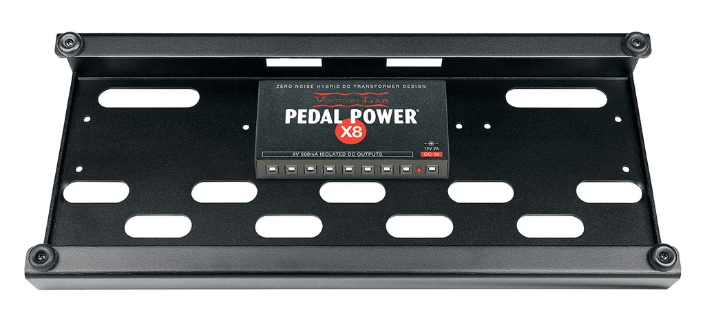 Voodoo Lab Dingbat Small Pedalboard with PPX8 (DBSX8)Lightweight American 6061-T6 aircraft-grade Aluminum chassisPedalboard surface: 18" x 7.75"8 isolated 9V 500mA DC outputsIncludes AC line cord, DC power cable kit and 3M Dual Lock for mountingInnovative Zero Noise Hybrid DC Transformer design